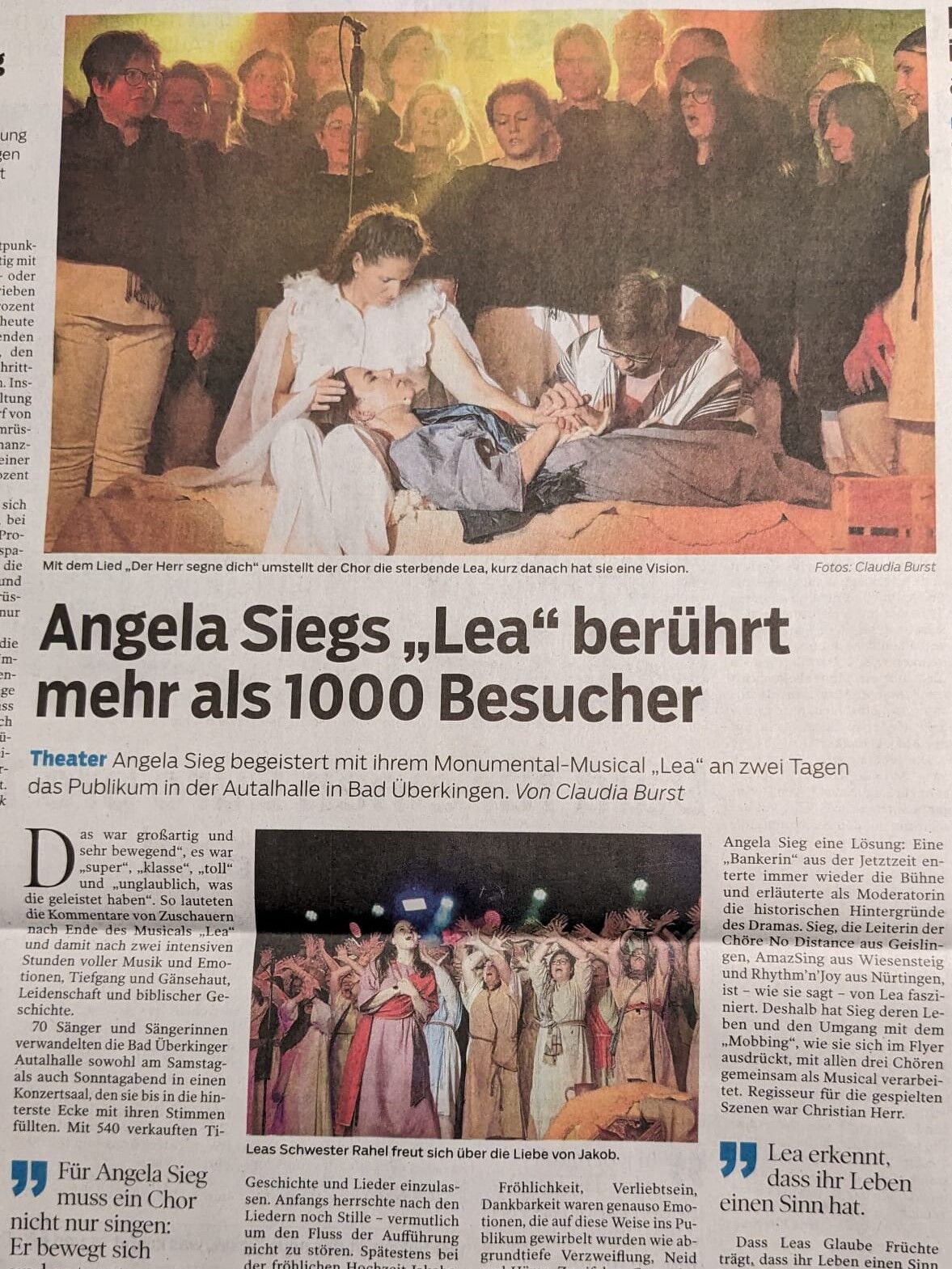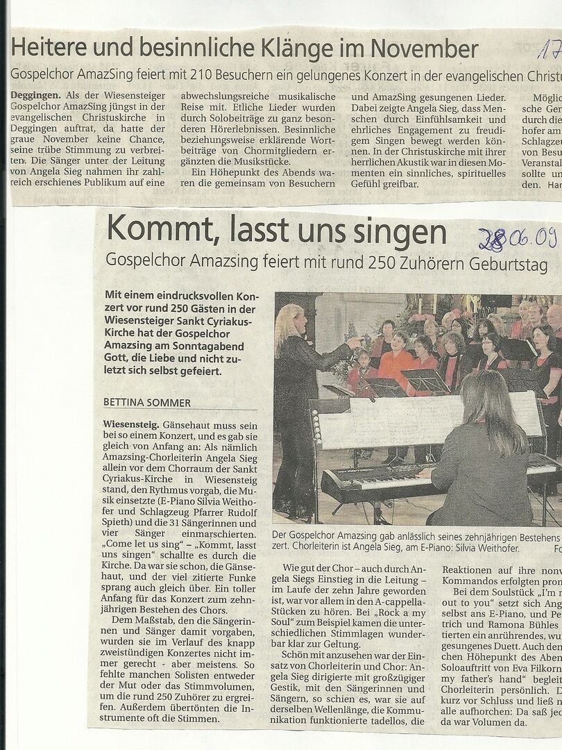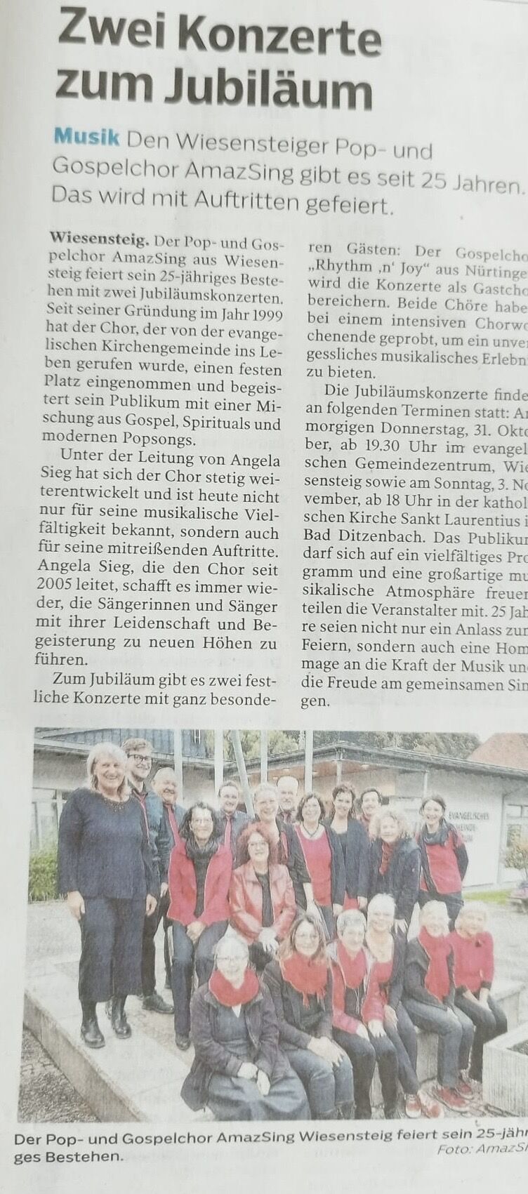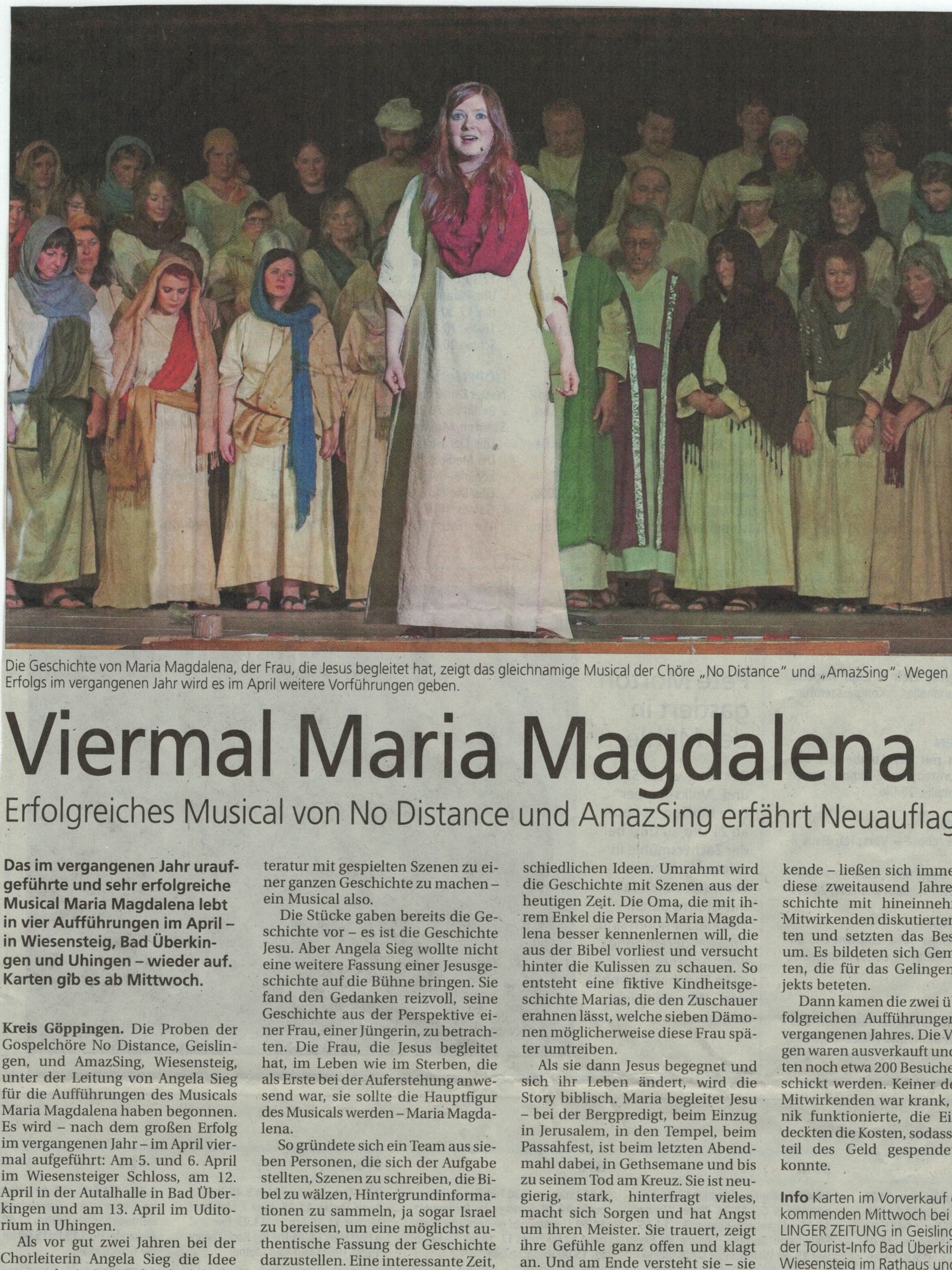 Die Chöre No Distance, AmazSing und Rhythm'n Joy unter der Leitung von Angela Sieg haben diese Sing-Begeisterung aufgenommen und führten „Luther“ im Mai 2017 regional in etwas kleinerer Besetzung auf.Die ca. 130 Sänger/-innen, darunter 12 Hauptrollen, wurden begleitet vom Streichorchester des Hölderlin Gymnasiums Nürtingen, sowie den Bläsern der Stadtkapelle Wiesensteig und einer 6 köpfigen Band.